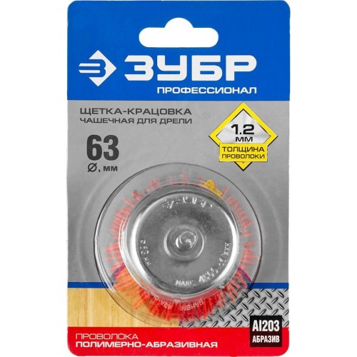 Щетка чашечная для дрели ЗУБР 35165-063_z02, предназначена для применения с дрелью для удаления заусенцев, въевшейся грязи и шлифовки поверхностей изделий из пластика, древесины, стали и цветных металлов, а также полирования перед шпатлеванием (в том числе при ремонте кузова автомобиля). Абразивная нейлоновая проволока оптимально подходит для бережного матирования и текстурирования дерева без нарушения геометрии годичных колец. Зачистная способность рабочих пучков повышена благодаря специальной технологии тримминга. Каждая щетка-крацовка ЗУБР проходит обязательный контроль качества. Все изготавливаемые щетки соответствуют действующим стандартам качества и обеспечивают безопасную работу в четко регламентированном диапазоне оборотов.