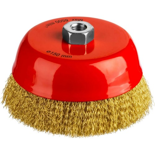 Щетка чашечная для УШМ MIRAX 35142-150, предназначена для зачистки поверхностей от лакокрасочных покрытий, ржавчины, окалины, различных стойких загрязнений, а также для зачистки сварных швов. Каждая щетка-крацовка MIRAX проходит обязательный контроль качества. Все изготавливаемые щетки соответствуют действующим стандартам качества и обеспечивают безопасную работу в четко регламентированном диапазоне оборотов. Применяется для зачистки поверхностей от лакокрасочных покрытий, ржавчины, окалины и различных загрязнений. Витая стальная латунированная проволока. Латунированное покрытие защищает рабочую часть щетки от коррозии.