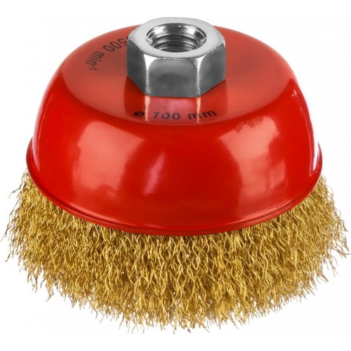 Щетка чашечная для УШМ MIRAX 35142-100, предназначена для зачистки поверхностей от лакокрасочных покрытий, ржавчины, окалины, различных стойких загрязнений, а также для зачистки сварных швов. Каждая щетка-крацовка MIRAX проходит обязательный контроль качества. Все изготавливаемые щетки соответствуют действующим стандартам качества и обеспечивают безопасную работу в четко регламентированном диапазоне оборотов. Применяется для зачистки поверхностей от лакокрасочных покрытий, ржавчины, окалины и различных загрязнений. Витая стальная латунированная проволока. Латунированное покрытие защищает рабочую часть щетки от коррозии.