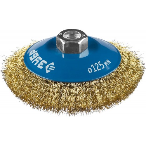 Щетка крацовка коническая для УШМ ЗУБР 35267-125_z02, предназначена для зачистки поверхностей в труднодоступных местах от лакокрасочных покрытий, ржавчины, окалины, различных загрязнений с применением значительных усилий, а также для зачистки сварных швов. Каждая щетка ЗУБР проходит обязательный контроль качества. Все изготавливаемые щетки соответствуют действующим стандартам качества и обеспечивают безопасную работу в четко регламентированном диапазоне оборотов.