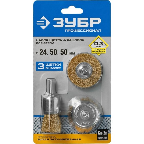 ЗУБР 3 шт, латунированная проволока, набор щеток для дрели 3530-H3_z02