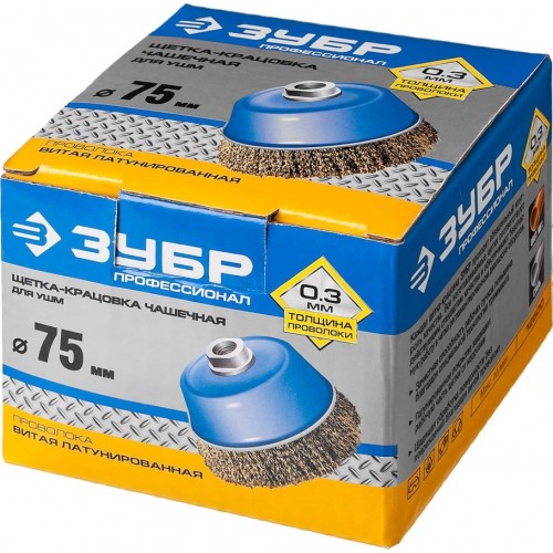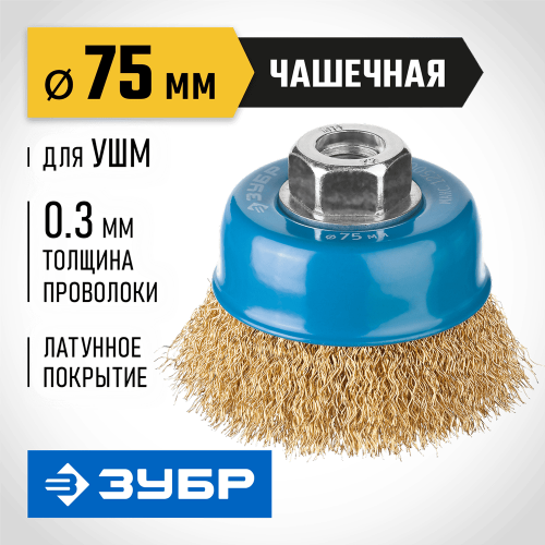 ЗУБР Ø 75 мм, проволока 0,3 мм, щетка чашечная для УШМ 3526-075_z02 Профессионал
