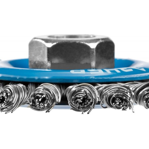- Повышенный ресурс щетки благодаря еще более высокой жесткости сплетенного пучка и увеличенной толщине проволоки