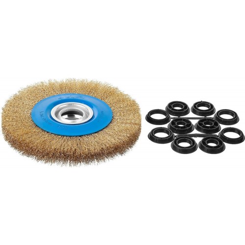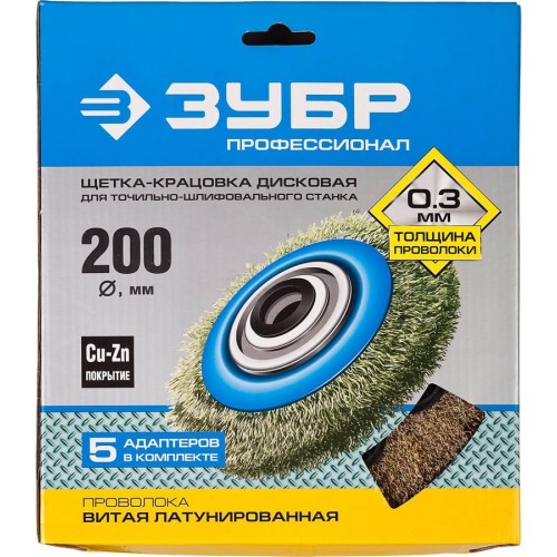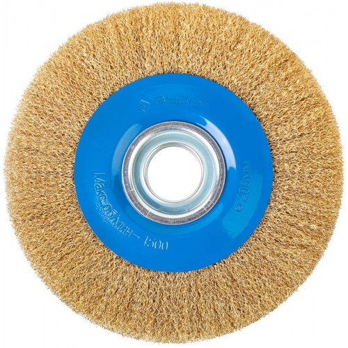 Щетка дисковая для точильно-шлифовального станка 200 мм, ЗУБР 35186-200_z01, для зачистки от лакокрасочных покрытий, ржавчины, окалины и различных загрязнений с поверхностей изделий из стали и цветных металлов. Латунированное покрытие защищает рабочую часть щетки от коррозии. Щадящая обработка поверхности без повреждений благодаря витой проволоке. Зачистная способность рабочих пучков повышена благодаря специальной технологии тримминга.
