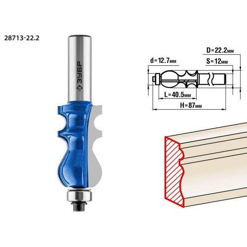 ЗУБР 22.2 x 40.5 мм, хвостовик 12 мм, фреза кромочная фигурная №2 28713-22.2 Профессионал