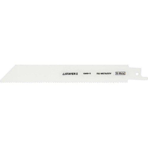 Сабельное полотно STAYER 159459-13, предназначено для распилочных работ по листовому металлу, металлическим трубам и алюминиевым профилям. Применяется на сабельной электрической ножовке при резке листового металла до 4 мм, алюминиевого, пластикового профиля до 100 мм.