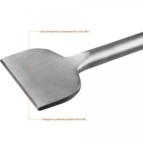 Зубило лопаточное ЗУБР 29375-125-400, предназначено для ремонта, реконструкции, долбежных и демонтажных работ по бетону, камню, кирпичу. Используются с отбойными молотками с креплением HEX 30.Преимущества: