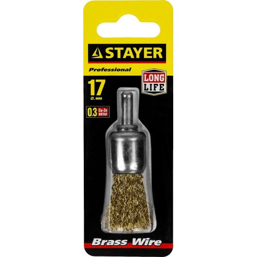 Щетка кистевая для дрели STAYER 35113-17, предназначена для применения с дрелью для удаления краски, ржавчины, заусенцев, нагара, окалины с поверхностей изделий из стали и цветных металлов. Все изготавливаемые щетки STAYER серии PROFESSIONAL соответствуют действующим стандартам качества и обеспечивают безопасную работу в указанном диапазоне оборотов.