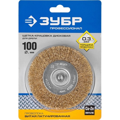 Щетка дисковая для дрели ЗУБР 3520-100_z02, предназначена для применения с дрелью для удаления застарелых лакокрасочных покрытий, въевшейся грязи, ржавчины, окалины с поверхностей изделий из стали и цветных металлов. Латунированное покрытие защищает рабочую часть щетки от коррозии. Щадящая обработка поверхности без повреждений благодаря витой проволоке. Зачистная способность рабочих пучков повышена благодаря специальной технологии тримминга. Износостойкое покрытие защищает от коррозии. Каждая щетка-крацовка ЗУБР проходит обязательный контроль качества. Все изготавливаемые щетки соответствуют действующим стандартам качества и обеспечивают безопасную работу в четко регламентированном диапазоне оборотов.