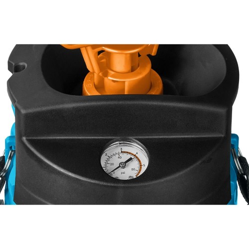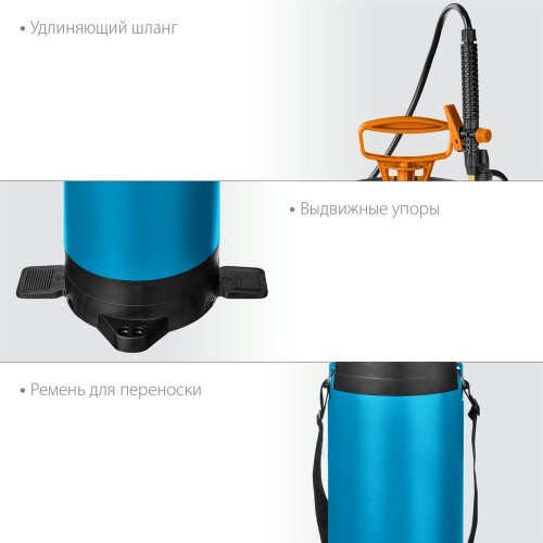 Опрыскиватель переносной GRINDA 8-425158_z02, предназначен для работ по защите растений от вредителей и болезней. Упоры для ног, манометр, армирование шланга, ремень для переноски на плече, удлинитель из латуни, длина удлинителя 77-108 см, регулировка струи, клапан сброса давления.