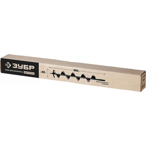 Шнек является сменным элементом для мотобуров ЗУБР. Он представляет собой винтообразный бур, который широко применяют для бурения скважин бытового назначения. Например, с его помощью можно бурить скважины для установки столбов. Благодаря винтовой форме шнек быстро проникает сквозь грунт и выбрасывает его наверх.