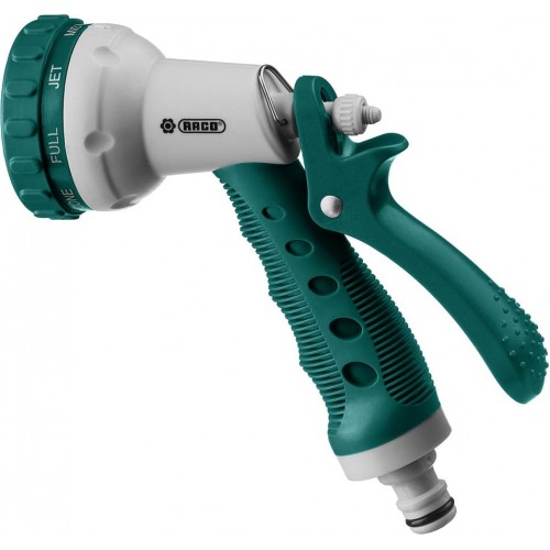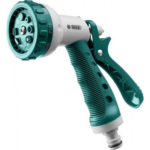 Пистолет поливочный RACO 4255-55/508C-18, предназначен для полива растений при подключении к садовому шлангу. Мягкое ребристое покрытие из термопластичной резины обеспечивает удобный хват даже влажной рукой и защищает от проскальзывания. Непрерывная регулировка от жесткой струи до распыления.