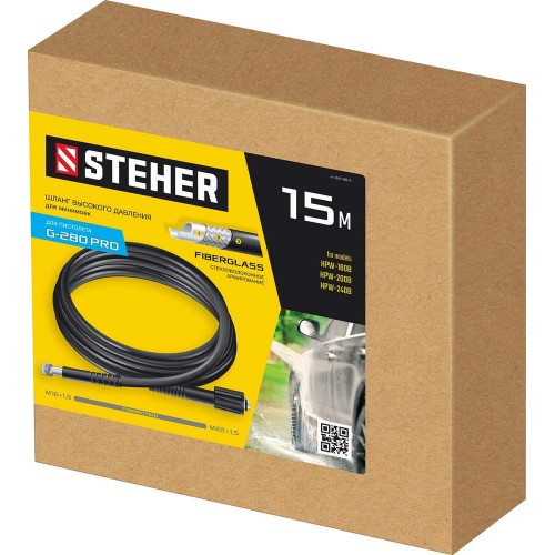 Шланг высокого давления STEHER 75411-280-15, предназначен для подачи воды под давлением на расстояние от изделия. Шланг имеет стекловолоконное армирование. Длина шланга 15 м. Надежное резьбовое соединение. Подходит для моек HPW-180B, HPW-200B, HPW-240B.