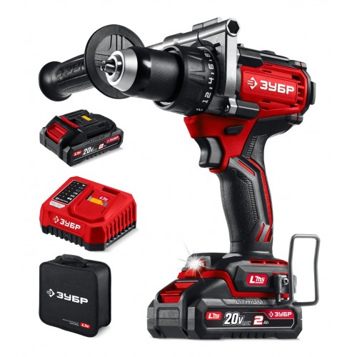 ЗУБР 20 В, 165 Н·м, 2 АКБ LMS (2 А·ч), бесщеточная дрель-шуруповерт, сумка (ДБ-165-22)