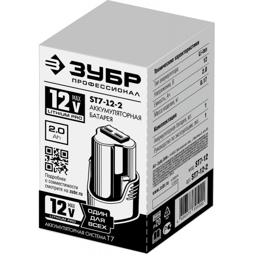 Аккумуляторная батарея ЗУБР ST7-12-2, предназначена для обеспечения бесперебойного питания аккумуляторного инструмента: