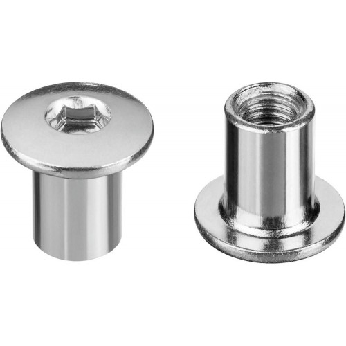 Для создания разъемного резьбового соединения в мебельном производстве, стяжки деталей и конструкций. Гайка устанавливается в заранее подготовленное отверстие, равное или чуть больше внешнего диаметра гайки. Фиксация гайки происходит при помощи винта с метрической резьбой. Для затягивания соединения используется торцевой шестигранный ключ.