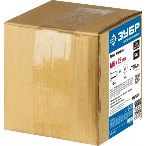 ЗУБР M6x12 мм, 5 кг (765 шт), оцинкованная, шест. 5 мм, гайка Эриксона с полукруглой головкой 303760-5