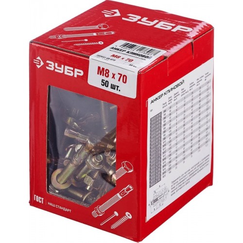 ЗУБР 50 шт., М8х70 мм, желтопассивированный, анкер клиновой 302032-08-070