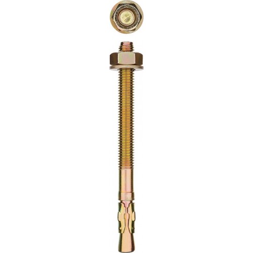 Для монтажа конструкций к полнотелым основаниям: поверхностям из бетона, полнотелого кирпича или природного камня. Анкер устанавливается в предварительно просверленное и очищенное от буровой муки отверстие и расклинивается при закручивании гайки