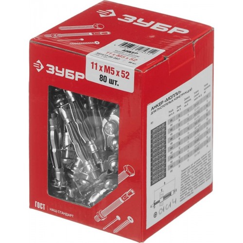 ЗУБР 80 шт., М5х52х11 мм, оцинкованный, анкер МОЛЛИ для пустотелых конструкций 302472-05-052