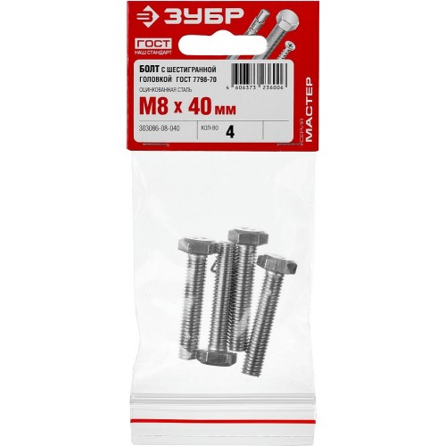 Болты ЗУБР 303086-08-040 изготовлены из высококачественной стали в полном соответствии с действующими стандартами и техническими предписаниями. Находят широкое применение в машиностроении, приборостроении, строительстве, быту и т.д. Шестигранная головка под ключ позволяет создать высокий крутящий момент при затягивании соединения. Класс прочности 5.8 обеспечивает необходимую жесткость конструкции. Цинковое покрытие надежно защищает от коррозии. Для создания разъемного резьбового соединения деталей и конструкций в строительстве и машиностроении. Используются совместно с гайками и шайбами.