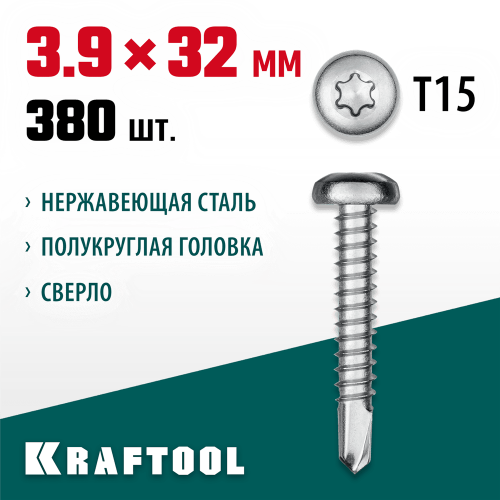 KRAFTOOL 32 х 3.9 мм, 380 шт., нержавеющие саморезы DS-P с полукруглой головкой 300931-39-032