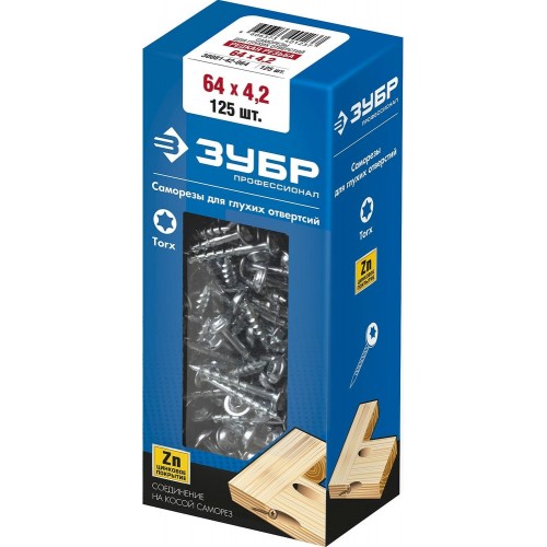 ЗУБР 64 х 4.2 мм, 125 шт, редкая резьба, саморезы для глухих отверстий 30081-42-064 Профессионал