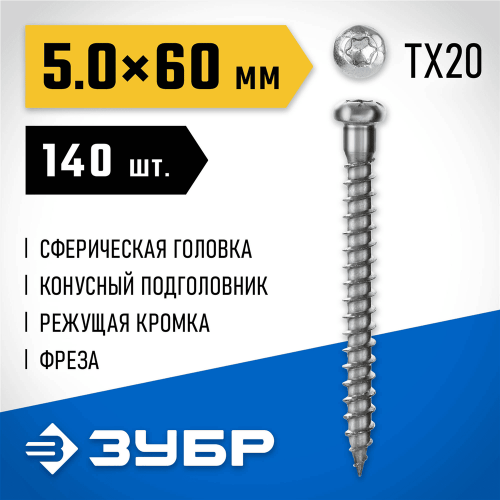 Саморезы ЗУБР 30061-50-60 для перфорированного крепежа, применяются в строительстве для создания надежного и прочного крепления различных конструкций. Обладает высокой прочностью и пластичностью, благодаря чему не разрушаются при деформациях и изгибе. Сферическая головка с конусным подголовником плотно прижимает металл к опорной поверхности. Износостокий шлиц TORX предотвращает срывание биты при закручивании и обеспечивает большой крутящий момент. Цинковое покрытие надежно защищает от коррозии. Режущая кромка на острие рассвеливает древесину, не допуская ее расщепления.