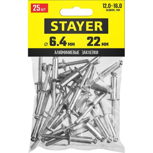Алюминиевые заклепки STAYER 3120-64-22, предназначены для получения неразъемного соединения из двух или более слоев материалов с помощью заклепочника.