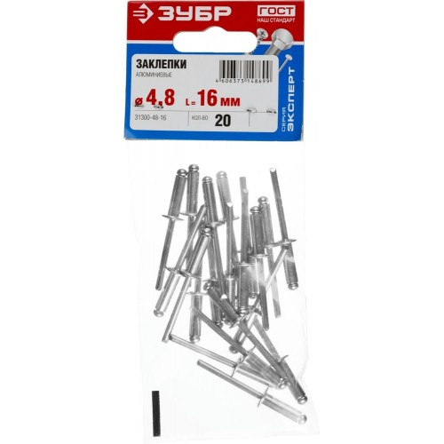 ЗУБР 4.8 х 16 мм, AlMg3, 20 шт., заклепки алюминиевые 31300-48-16