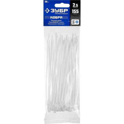 ЗУБР 155х2.5, 50 шт., хомуты нейлоновые белые, с плоским замком КОБРА 30930-25-155 Профессионал