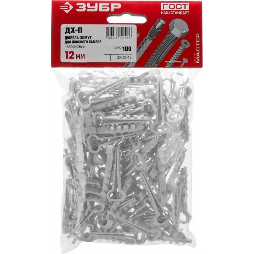 ЗУБР 12 мм, 100 шт., нейлоновый, дюбель-хомут для плоского кабеля ДХ-П 30912-12