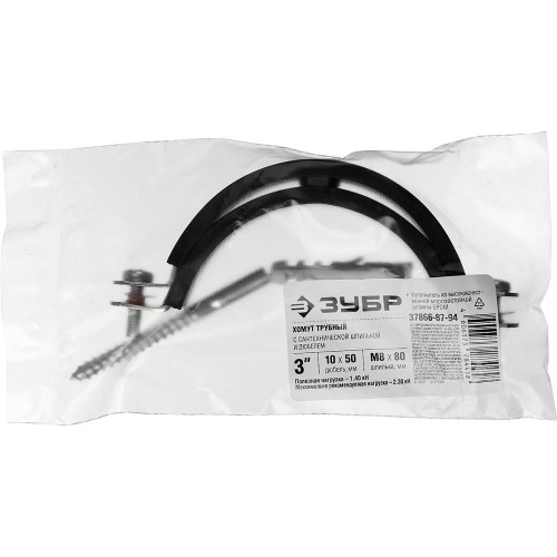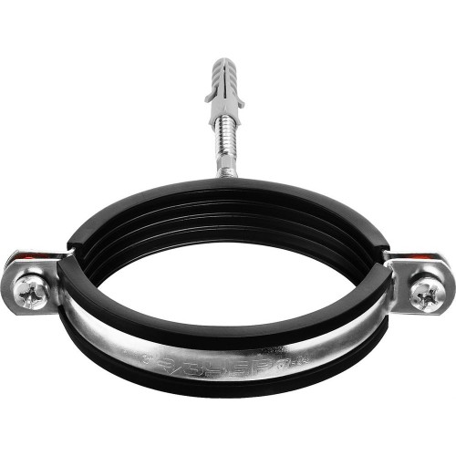 Хомут для труб металлический ЗУБР 37866-87-94, предназначен для крепления труб различного назначения. Хомуты усилены двумя ребрами жесткости и снабжены уплотнителем из высококачественной резины, что обеспечивает идеальную шумоизоляцию.