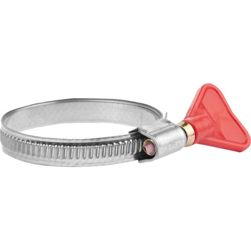 Червячный хомут состоит из штампованной нержавеющей ленты, винта с червячной резьбой и пластикового ключа. Накатная лента имеет гладкую внутреннюю поверхность, которая предотвращает повреждения поверхности скрепляемых материалов. При вращении винта лента сжимается, благодаря чему создается надежное и герметичное соединение шлангов, различных труб, и т.д. Червячный винт снабжен пластиковым ключом, что позволяет установить хомут без помощи инструментов.