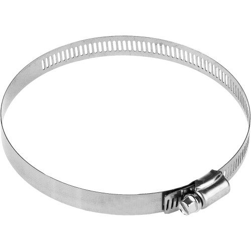 Хомут металлический ЗУБР 37815-105-127-50, предназначен для крепления шлангов к патрубкам, а также широко применяются в автомобилестроении, машиностроении, при выполнении авторемонтных, садовых, сантехнических и прочих работ. Хомут червячный состоит из просечной ленты и замка с винтом. Для монтажа хомута необходима только отвертка. Изготовленный из нержавеющей стали хомут обладает повышенной прочностью и коррозионостойкостью. Червячный хомут состоит из штампованной нержавеющей ленты и винта с червячной резьбой. По всей длине ленты имеются просечки, расположенные на одинаковом расстоянии друг от друга. При вращении винта лента сжимается, благодаря чему создается надежное и герметичное соединение шлангов, различных труб, и т.д. Червячный винт снабжен шестигранной головкой и шлицем SL, что позволяет использовать при монтаже гаечный ключ или шлицевую отвертку. Хомут предназначен для многократного использования.