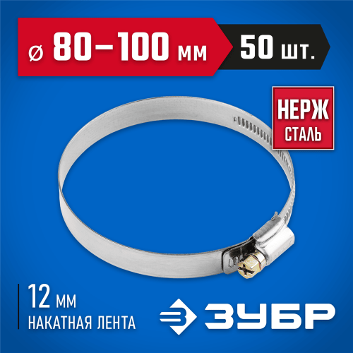 Хомут металлический ЗУБР 37822-80-100-50, предназначен для крепления шлангов к патрубкам, а также широко применяются в автомобилестроении, машиностроении, при выполнении авторемонтных, садовых, сантехнических и прочих работ. Хомут червячный состоит из накатной ленты и замка с винтом. Накатная лента имеет гладкую внутреннюю поверхность, что обеспечивает высокую герметичность соединения без повреждения поверхности скрепляемых материалов. Простота и удобство монтажа - для монтажа достаточно отвертки. Изготовленный из нержавеющей стали хомут обладает повышенной прочностью и коррозионостойкостью. Червячный винт снабжен шестигранной головкой и шлицем SL, что позволяет использовать при монтаже гаечный ключ или шлицевую отвертку. Хомут предназначен для многократного использования.