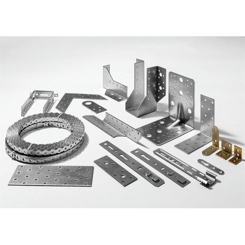 Угловые крепления (крепежные углы) – это основной элемент соединения перекрестно-перпендикулярных узлов. Монтаж перфорированного крепежа не требует предварительной врезки или создания пазов, выступов и прорезей. Формирование соединений возможно как с внутренней, так и с внешней стороны конструкции. Для монтажа деревянных конструкций совместно с перфорированными изделиями используются специальные ершеные гвозди с конической головкой или саморезы.