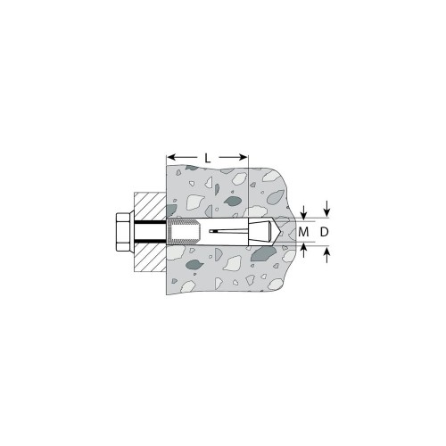 Анкеры забивные с клином (конусообразная гайка) изготовлены из высококачественной стали. Обеспечивают более высокие вырывные нагрузки по сравнению с дюбелями и позволяют крепить различные элементы и конструкции к несущим основаниям. Конструкция анкера состоит из нераспорной части, которая не участвует в закреплении, и распорной (рабочей) зоны, которая изменяет свои размеры (форму).