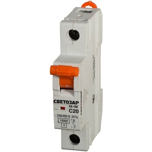 Автоматический 1-полюсный выключатель СВЕТОЗАР ″C″, 10 кА, 230/400 В выполняет функцию защиты установок от перегрузок и коротких замыканий. Он применяется в жилых, промышленных и административных зданиях. Главная особенность при выборе выключателя: он должен соответствовать напряжению и расчётному току цепи. Прибор выключает сеть при 5-10 кратном превышении номинальной силы тока. Выключатель превосходит параметры ГОСТ (от -5°С до +40°С), поскольку устойчив к температурам от -40°С до +45°С.