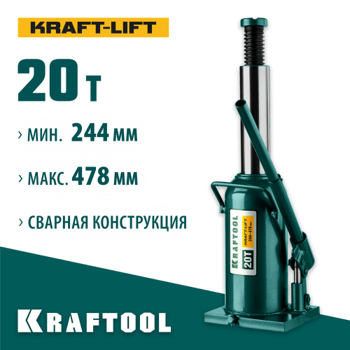 KRAFTOOL KRAFT-LIFT, 20т 244-478 мм, Бутылочный гидравлический домкрат (43462-20_z01)