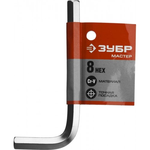 Имбусовый ключ ЗУБР 27453-8, предназначен при работах с крепежом, имеющим внутреннее шестигранное гнездо (HEX). Это - универсальный инструмент, как для домашнего мастера, так и для профессионала. Широкий размерный ряд и точная обработка рабочих граней обеспечивают отличные результаты работы.