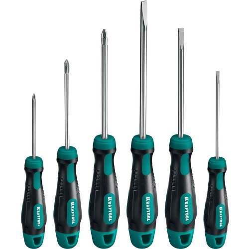Набор отверток Kraftool 250081-H6_z01, предназначен для монтажа и демонтажа резьбовых соединений. Отвертки KRAFTOOL X-Drive изготовлены из высокопрочной Cr-Mo стали. Специальная закалка стержня и система насечек NSS обеспечивают удобство работы и длительный срок службы. Кованый закаленный стержень из Cr-Mo стали. Прецизионная обработка граней обеспечивает точную посадку в крепеже.