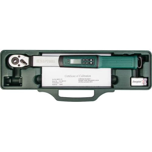 Электронный динамометрический ключ KRAFTOOL 64043-135, предназначен для определения усилие затяжки крепежа с высокой точностью. Благодаря широкому диапазону измерений может применяться в различных областях машиностроения и промышленности. Цифровой дисплей облегчает выставление необходимого крутящего момента. Данный ключ является прецизионным инструментом и помогает предотвратить поломки крепежа при работе с ним. Хромомолибденовый храповый механизм обеспечивает стойкость к высоким нагрузками при работе. Эргономичная рукоятка ключа удобно лежит в руке.