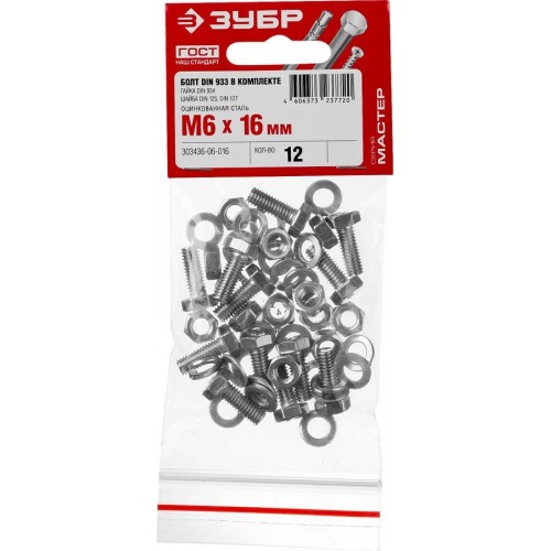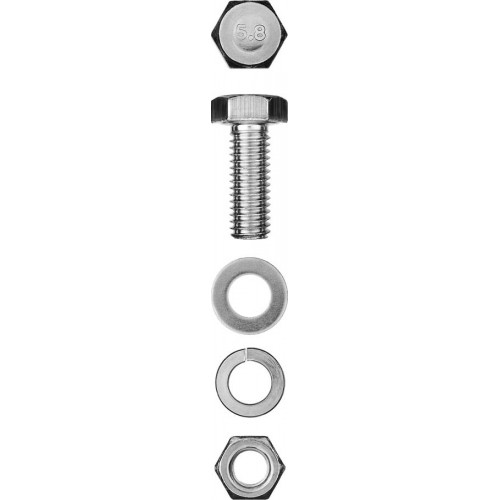 Набор 303436-06-016 изготовлен из высококачественной стали в полном соответствии с действующими стандартами и техническими предписаниями. Находят широкое применение в машиностроении, приборостроении, строительстве, быту и т.д. Болты имеют шестигранную головку под ключ, что позволяет создать высокий крутящий момент при затягивании соединения. Пружинные шайбы предотвращают раскручивание соединения. Плоские шайбы предназначены для увеличения площади соединения и распределения давления на опорную поверхность Класс прочности 5.8 обеспечивает жесткость конструкции Цинковое покрытие надежно защищает от коррозии Для создания разъемного резьбового соединения деталей и конструкций в строительстве и машиностроении.