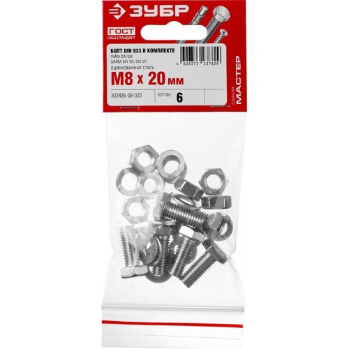 Набор 303436-08-020 изготовлен из высококачественной стали в полном соответствии с действующими стандартами и техническими предписаниями. Находят широкое применение в машиностроении, приборостроении, строительстве, быту и т.д. Болты имеют шестигранную головку под ключ, что позволяет создать высокий крутящий момент при затягивании соединения. Пружинные шайбы предотвращают раскручивание соединения. Плоские шайбы предназначены для увеличения площади соединения и распределения давления на опорную поверхность Класс прочности 5.8 обеспечивает жесткость конструкции Цинковое покрытие надежно защищает от коррозии Для создания разъемного резьбового соединения деталей и конструкций в строительстве и машиностроении.