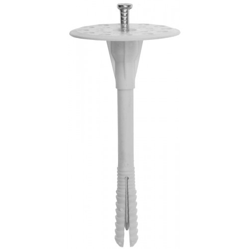 Дюбели для теплоизоляции изготовлены из высококачественных материалов. Большой диаметр головки дюбеля позволяет крепить как твердые, так и мягкие теплоизоляционные материалы (минеральную вату, стекловату, полистирол, пенопласт и др.), препятствуя их разрыву или повреждению в месте крепления.