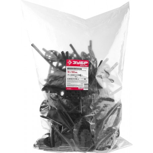 Дюбели для теплоизоляции ЗУБР 4-301525-10-160_z01, предназначены для крепления теплоизоляционных материалов к полнотелым строительным материалам (бетону, кирпичу, природному камню). Дюбель вставляется в предварительно просверленное сквозное отверстие диаметром 10 мм, гвоздь забивается при помощи молотка. Дюбели изготовлены из высококачественных материалов. Большой диаметр головки дюбеля позволяет крепить как твердые, так и мягкие теплоизоляционные материалы, препятствуя их разрыву или повреждению в месте крепления. Металлический гвоздь позволяет использовать дюбель в местах с повышенной нагрузкой и требованиями по жесткости: нанесение штукатурного слоя поверх теплоизоляции и т.п. Легкий и быстрый монтаж. Поперечные "зубцы" прочно удерживают установленный дюбель в отверстии, предотвращая его вырывание. Специальный ограничитель на конце дюбеля защищает от преждевременного распора при установке. Полипропилен устойчив к воздействию влаги, что позволяет использовать дюбели при выполнении наружных работ.