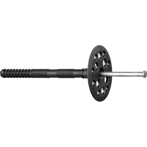 Дюбели для теплоизоляции ЗУБР 4-301525-10-140_z01, предназначены для крепления теплоизоляционных материалов к полнотелым строительным материалам (бетону, кирпичу, природному камню). Дюбель вставляется в предварительно просверленное сквозное отверстие диаметром 10 мм, гвоздь забивается при помощи молотка. Дюбели изготовлены из высококачественных материалов. Большой диаметр головки дюбеля позволяет крепить как твердые, так и мягкие теплоизоляционные материалы, препятствуя их разрыву или повреждению в месте крепления. Металлический гвоздь позволяет использовать дюбель в местах с повышенной нагрузкой и требованиями по жесткости: нанесение штукатурного слоя поверх теплоизоляции и т.п. Легкий и быстрый монтаж. Поперечные "зубцы" прочно удерживают установленный дюбель в отверстии, предотвращая его вырывание. Специальный ограничитель на конце дюбеля защищает от преждевременного распора при установке. Полипропилен устойчив к воздействию влаги, что позволяет использовать дюбели при выполнении наружных работ.