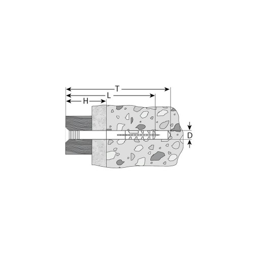 Для быстрого сквозного монтажа различных конструкций к полнотелым основаниям (бетон, кирпич, природный камень). Установка производится в предварительно просверленное и очищенное от буровой муки отверстие диаметром 8мм.