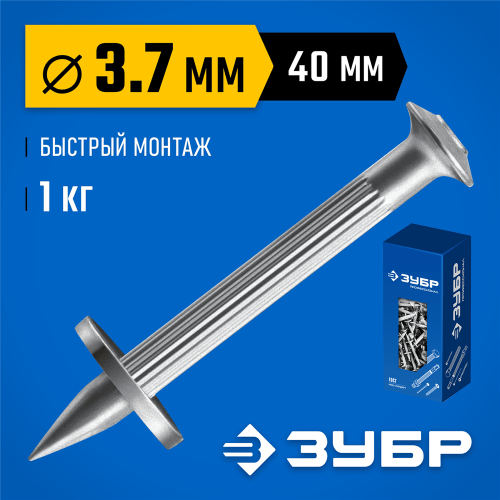 ЗУБР ДГМ 40 х 3.7 мм, дюбель-гвоздь монтажный, цинк, 1 кг (3063-37-40-1)